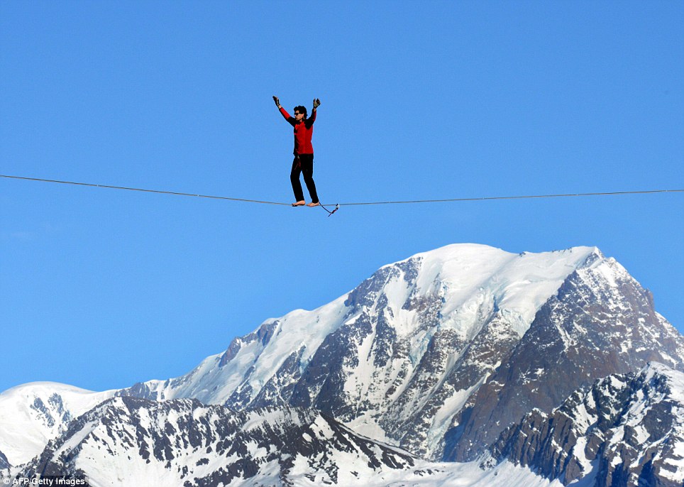 一位法國的男子走在 1200 尺上的高空中!就在阿爾卑斯山上! Julien Millot 走在兩英吋的鋼索 ……